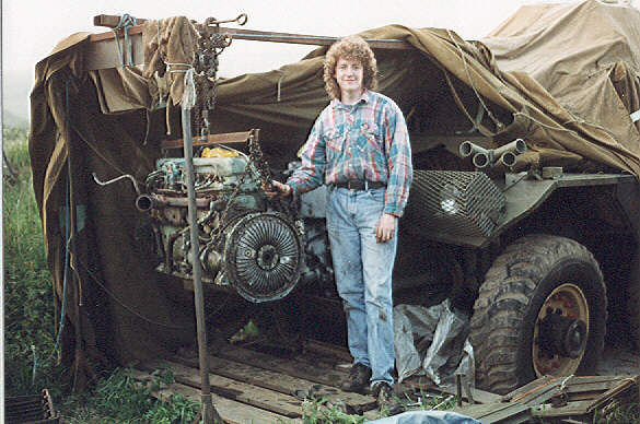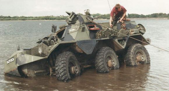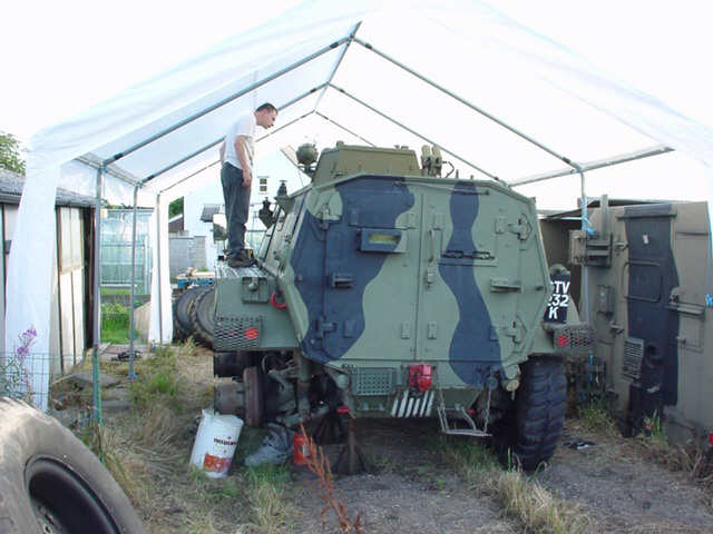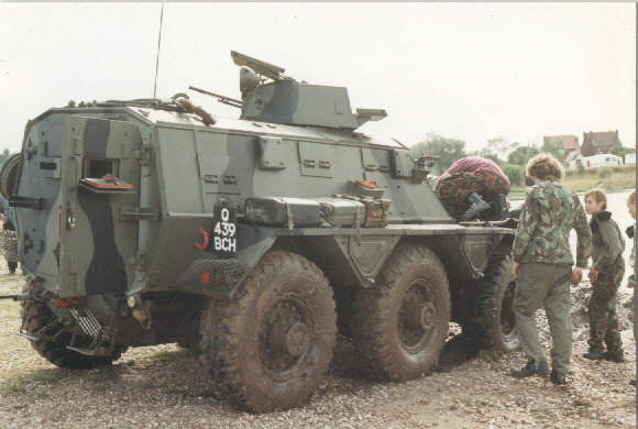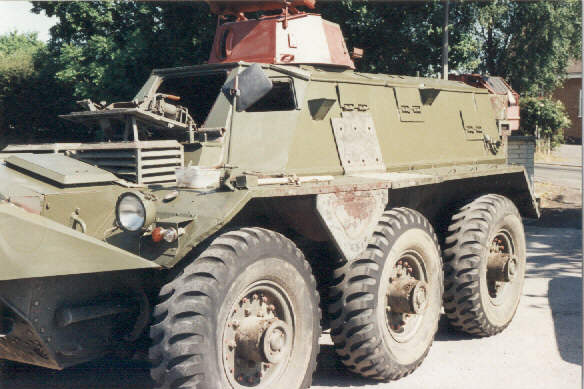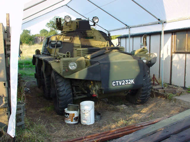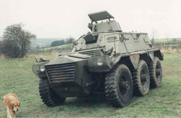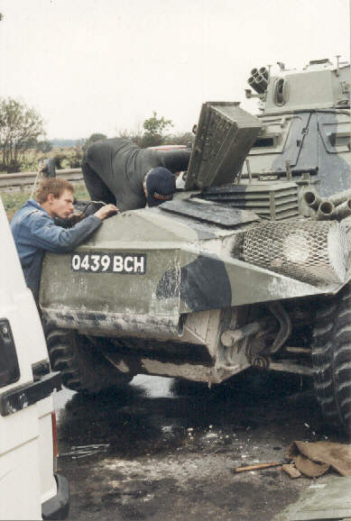I bought Sarry from Whithams Specialists. in November 1994. Its a Mk. 6 (up armoured, with reverse flow cooling). It was converted from a Mk 3 in Feb. 1972 and went to Ireland. In 1974 it was taken out of service. Don't know why I bought it, suppose it just fitted the mood that I was in at the time. Plus I needed something else to restore. As a vehicle its very good. Easy to drive, though you do need a good left leg for the gear change peddle. False neutrals are nasty though, I need both feet on the peddle to get it back in gear. Visibility is very good both forward and rearward. (I have put lorry mirrors on for road use, this means that one person can drive without the need for a commander). The rear doors make it easy to get all our kit in when we go to shows at the weekends and sometimes the full week. To find good points for these is very difficult, to find bad points is easy!! Too remove a wheel on your own is easy. Too put it back needs two of you. It takes one person about two hours to grease up all the nipples. ( this is done every month). Maintenance in the engine and transmission is an absolute nightmare. There just isn't the space to work on anything properly. We had the pulley on the fan belt come off, it sheared all four bolts but luckily it did no damage. This means the front cowling has to come off, the radiator grill needs removing, the radiator taking out and the fans removing. Replacing 4 bolts took about 10 minutes:-) its just the four hours or so needed for the rest of the parts :-( , (of course, they still have to be put back before we can test ). To remove and clean the carb is a major task, the same goes for the sparkplugs.