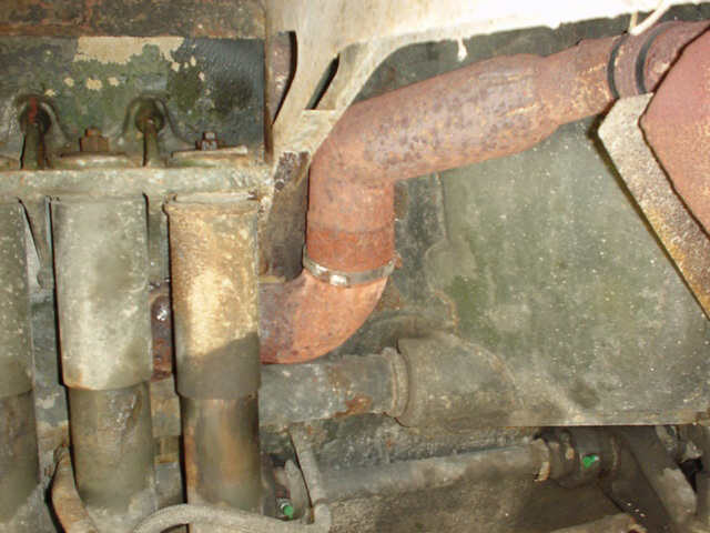 The pic below explains its self. The cracked part came from inside the hull. Thats why the driver was suffering a bit from fumes. This part was bought in the end, though I was going to fabricate a new one up. I've turned up stainless studs and nuts so that it comes to bits easier than with the angle grinder.