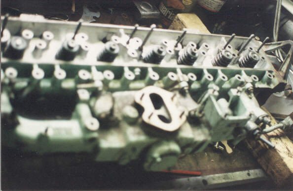The engine block after cleaning and regrinding the valve seats. Working on engines when in the vehicle is a nightmare. All spanners need to be tied to bits of string so you dont lose them in the bottom of the enginebay.(the swamp of doom).