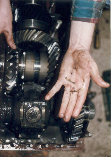 No wonder we were having problems. One of the bearing cages has collapsed. This has totally damaged the two helical spur gears on the input shaft. All 12 roller and ball bearings had to be replaced including all seal’s and needle bearings. Oh, and the oil pump was beyond repair because it tried pumping metal aswell as oil!! Changed the bronze bearings in the diff unit just for the sake of it. Amazingly , the bevel gears were in very good condition. No damage at all. All went to gether reasonable well. As normal we were working till after midnight getting it ready for its MOT the next day.