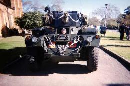 What is wrong with me? We have been on numerous outings, to N.R.M.A motor fest, 3 Reserve forces days, Eastern creek classic 1998, 1999, 2001, 2002. Concorse winner on 2 occasions, third settlement days, school fetes, School of Military engineering at Holdsworthy open days. Anzac day at Parramatta RSL, Avalon beach RSL. 1/15th Barracks at Parramatta, Soccer open day, Barker College cadets Parade, year 10 school formal where the gentleman got voted best vehicle and most impressive arrival. At a wedding where the best man and the groom rode in my Saladin and the bride and bridesmaid rode in a Saracen to the Church. Plus many more service trips to Bruce's back yard for work.