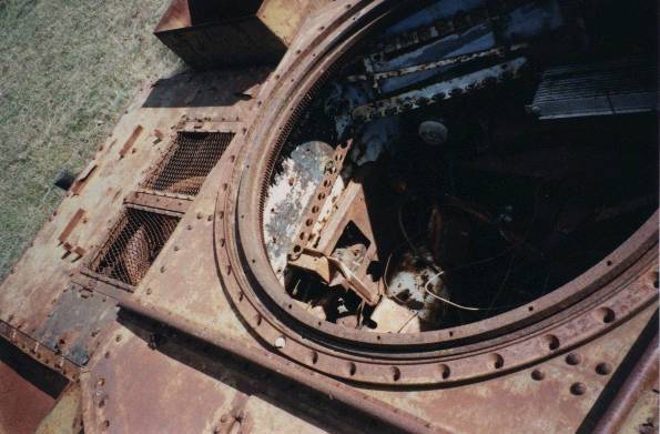 A top down view of the twin GM Grant. It is unusual to find a tank with it's engines still intact and almost never do you find one with its engine deck still ensitu. Rarer yet is to get a vehicle with all of the above AND the air grills.