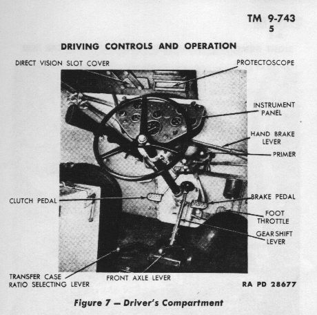 Prominent at lower right is the clearance hump for the front diff., the co-driver gets to sit with both legs firmly pressed together as there is not much room between the hump and the RHS armour.