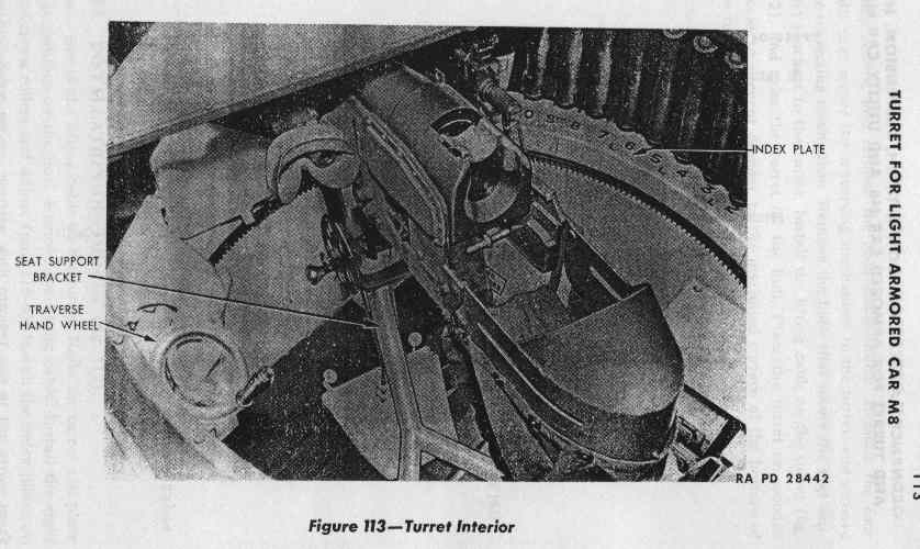 Also visible is the turret position numbers painted on the turret clamp cover plates that go around the inside edge of the turret. There was a black arrow painted next to the gunners shoulder, NOT at the front of the turret as you would expect.