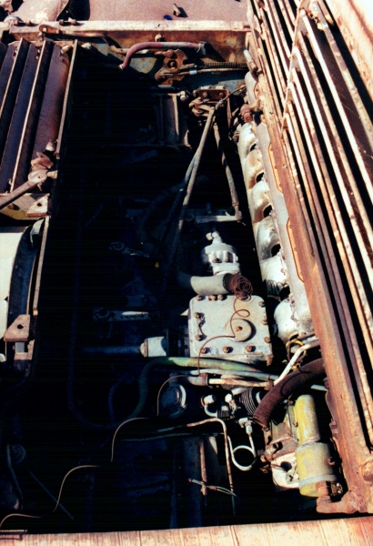 This shot is more or less for people interested in the innards of an engine compartment. What we see is the engine bay of possibly a T-62 or a T-64. These tanks, up to and including the T-72 had a MANUAL transmission, and a killer clutch pedal to boot. You need to have a very strong clutch to handle power coming out of a V12 twin supercharged diesel.