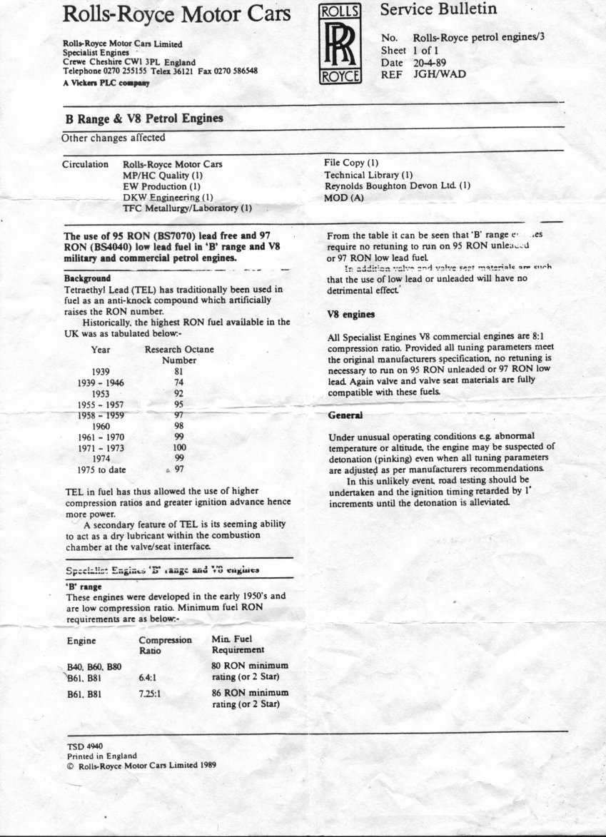 From Merlin in the UK comes this bulletin right from the horse's mouth as to whether of not it is safe to use unleaded petrol in the "B" series engines.!